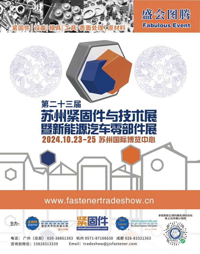 作为大规模国际紧固件专业展,第二十三届苏州紧固件与技术展暨新能源汽车零部件展将汇聚全球各大知名紧固件与技术配套企业,产品门类齐全,是紧固件产品与制造技术设备的采购平台。