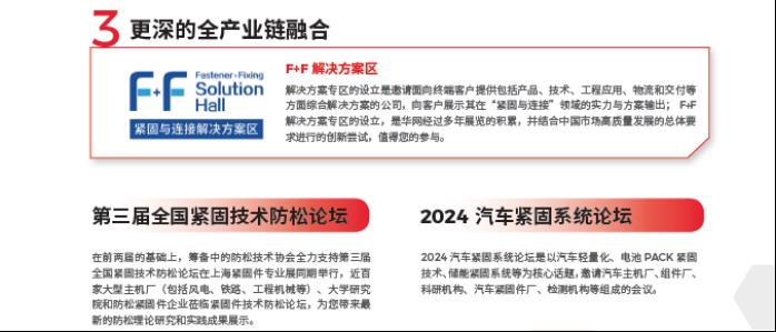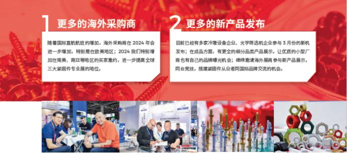关于展会:上海紧固件专业展自2010 年创办以来持续以“匠心”精神打造一个高水平的紧固件专业展,以本土化、国际化的视角对紧固件行业进行一站式全方位的展示。十多年来,来自于海内外各大协会、国际国内知名紧固件生产商、设备/线材/模具生产商的鼎力支持与热情参与,上海紧固件专业展已成为全球三大紧固件展之一,同时也成为中国乃至全球紧固件行业的行业风向标。