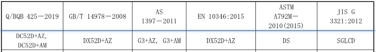 | 说明 | ①本标准规定了热浸度铝锌合金/铝锌镁合金镀层钢板及钢带的术语和定义、分类和代号、尺寸、外形、技术要求、检验和试验、包装、标志及检验文件等要求。 ②本标准适用于宝山钢铁股份有限公司生产的厚度为0.22~2.5mm的热镀铝锌合金/铝锌镁合金镀层钢板及钢带。 ③术语和定义: AZ-热镀铝锌合金镀层;AM-热镀铝锌镁合金镀层 |