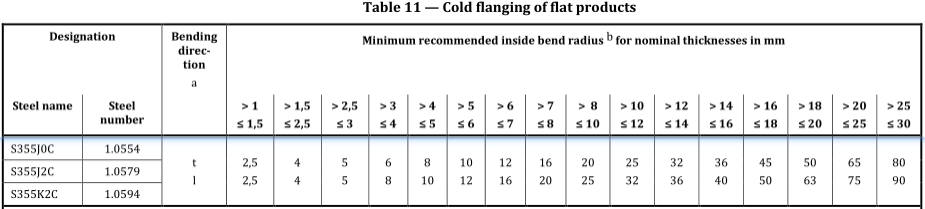 平板产品的冷翻边-材料厚度与最小弯曲半径