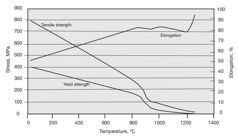 | 说明 | Incotherm alloy TD是专门为热电偶保护层开发的,在不使用可能导致热电偶随时间退化的元件的情况下,需要耐高温和强度。alloy TD为Ni-22% Cr合金,添加了1.4% Si, 3.0% Mo和稀土元素。锰和铝等元素可以扩散穿过热电偶绝缘体,污染热电偶导线,随着时间的推移导致电动势漂移,这些元素被控制在非常低的水平,因此具有良好的长期性能。此外,该成分类似于热元素丝,这进一步降低了元素在合金之间扩散的可能性。该合金在高达1250℃(2282 F)甚至更高的温度下具有出色的静态和循环抗氧化性能。 Incotherm alloy TD具有优异的抗氮化性能,大大降低了脆化的影响,而脆化会导致传统热电偶包覆合金的失效。 alloy TD具有很高的抗氧化性,因此可以考虑用于污染需要控制在低水平的应用,如玻璃制造和电子元件加工。 物理性能: 熔点: 1380~1400°C;电阻率: 1.16µΩ•cm;21~500°C间热膨胀系数: 8.09×10-6/°F 可用产品及规格联系制造商SMC |