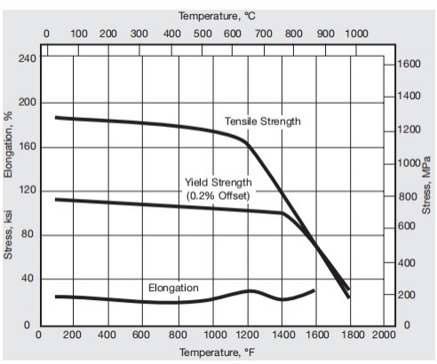 熔点:1330~1360°C;21-93°C热膨胀系数:6.8 x 10-6/°F;固溶处理后电阻率: 1.24μΩ.m;21°C弹性模量: 211GPa;导磁率: 1.004