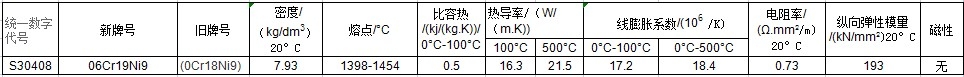 | 说明 | ①简介,特性及用途: 0Cr18Ni9(304)是典型的低碳奥氏体不锈钢,对应的美国牌号304。该牌号是在1Cr18Ni9(302)的基础上进一步降低碳含量得到的,具有良好的加工成型性能和抗氧化性能,对氧化性酸(如硝酸)有很强的耐腐蚀性能,对碱溶液及大部分有机酸和无机酸也有一定的耐腐蚀能力。具有良好的焊接性能。奥氏体不锈钢无法进行热处理强化,只能通过加工硬化提高强度。 0Cr18Ni9在2007年后的一些标准里,如GB/T 4240-2009、GB/T 1220-2007等,已经使用新牌号06Cr19Ni10,但目前工业生产中仍普遍使用旧牌号。该牌号在各行业已大量取代1Cr18Ni9Ti等传统奥氏体不锈钢,但在国内1Cr18Ni9Ti仍然在大量使用。 0Cr18Ni9在标准件上大量应用,除生产国标类产品,还代料生产部分低强度的航标产品,各种企标类产品生产较多。 ②选用建议: 抗拉强度500Mpa或700Mpa以上,有抗氧化,耐酸、碱和盐腐蚀,同时有无磁性的要求,建议使用。 ③钢板和钢带的表面加工类型见原件表31,需方应根据使用要求指定钢板表面加工类型。比如:304 1U , 304 1C等。1U-热轧、不热处理、不去皮;1C-热轧、热处理、不去皮。经供需双方协商,并在合同中注明,可提供原件表31以外的表面加工类型 ④钢板和钢带的边缘状态分类为:切边-EC;不切边(毛边)-EM,需方订货时可指定钢板边缘状态。  |