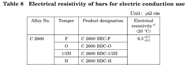 | 说明 | 具有良好的冷锻性和轧线性。 适用于机械零件、电器零件、电子产品等。 ①牌号后缀字母:BD=拉制棒材;BE=挤制棒材;BF=锻造棒材;BDN=用于圆螺母的拉制棒材;BDV=压力容器用棒材;BFC=导电用铸造棒材 ②本标准规定了截面为圆形/正六角形/正方形/长方形/正六角形的铜和铜合金棒材。 |